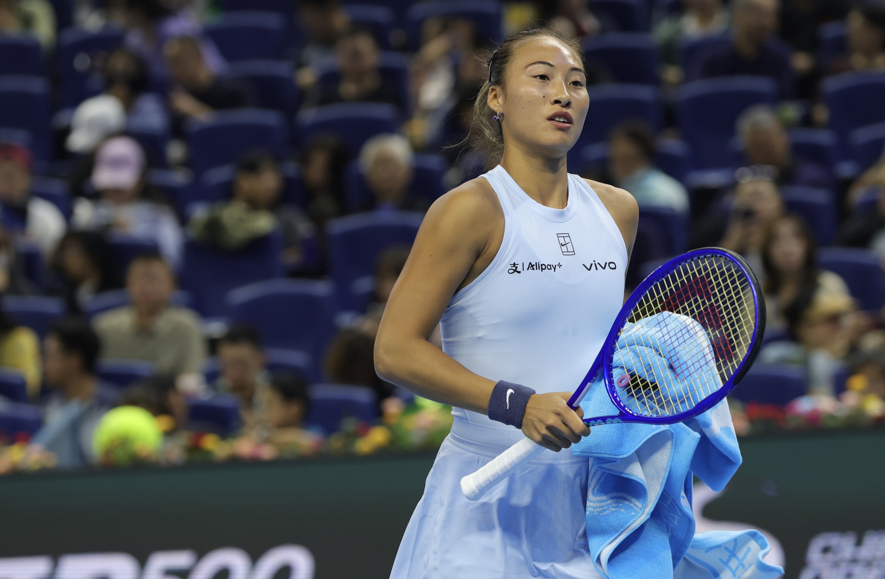 北京时间9月29日晚,中国网球公开赛女单第三轮比赛中,中国金花郑钦文在与捷克选手诺斯科娃的较量中战至第三盘0-3时因手肘伤势加重选择退赛,无缘16强。这个艰难的决定为她刚刚开始的复出之路蒙上了阴霾。郑钦文因伤离开赛场(中网官方供图) 比赛过程一波三折。首盘郑钦文以4-6告负,第二盘凭借第六局的关键破发以6-3扳平比分。一发成功率从首盘的较低水平提升至73%,展现出调整能力。然而进入决胜盘后,