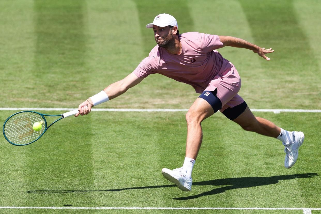 6月23日,哈利斯在比赛中发球。新华社/法新