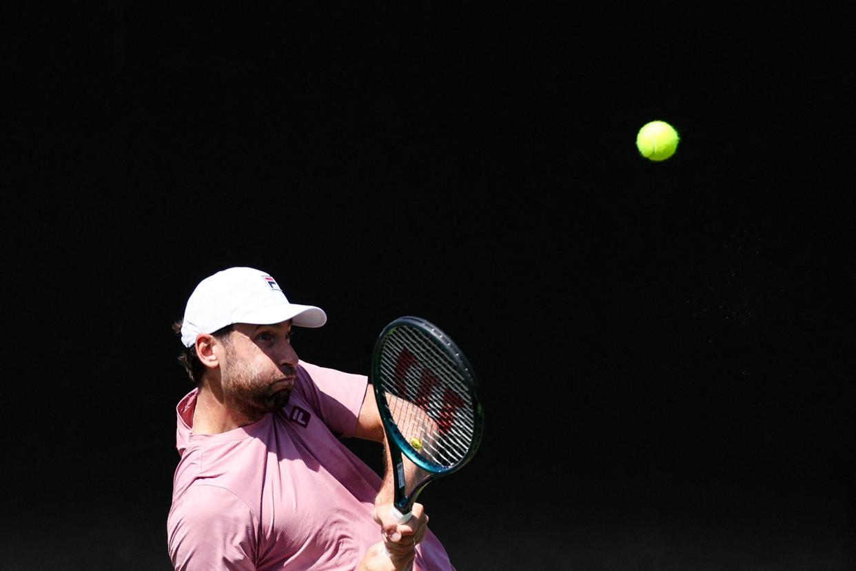 6月23日,贝卢奇在比赛中回球。新华社/法新